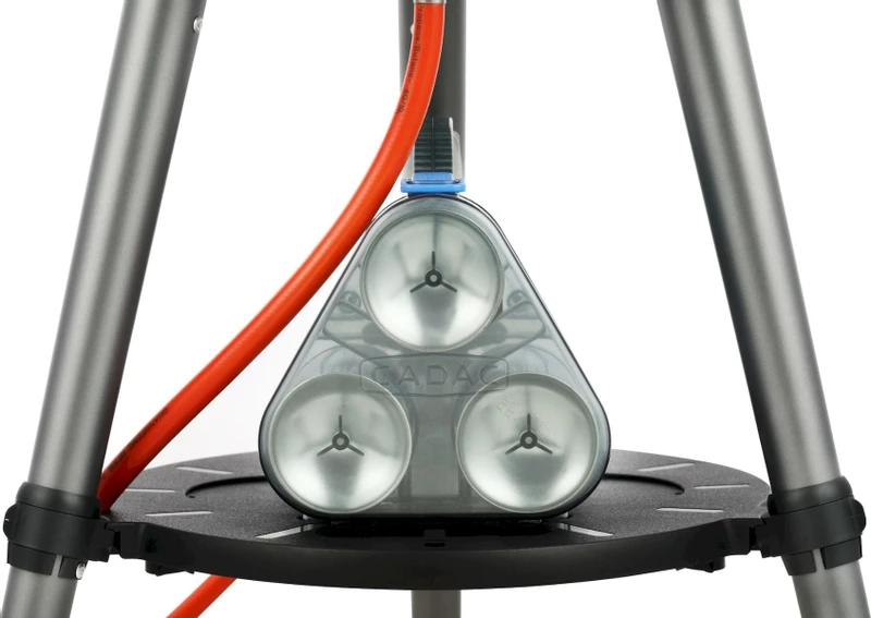 - Plateau tussen de poten waar de CADAC Dual Power Pak gasdrukregelaar in past