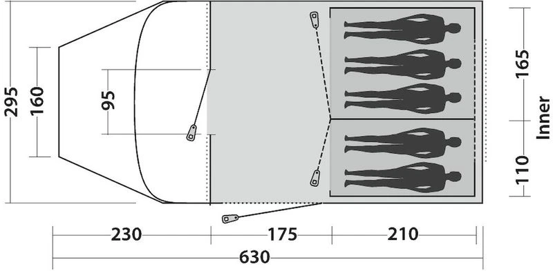 Je loopt deze tent heel eenvoudig binnen door de grote D-vormige deur óf de zijdeur. Je kunt daarnaast de tunneltent naar eigen wens indelen. Vind je het gezellig om met zijn allen in 1 ruimte te slapen? Of wil je juist liever 2 gescheiden slaapplekken? Het is beide mogelijk, dankzij de scheidingswand in de tent.